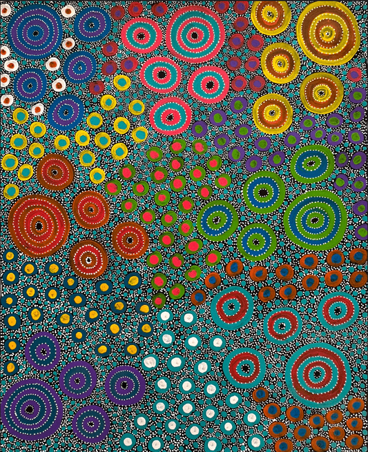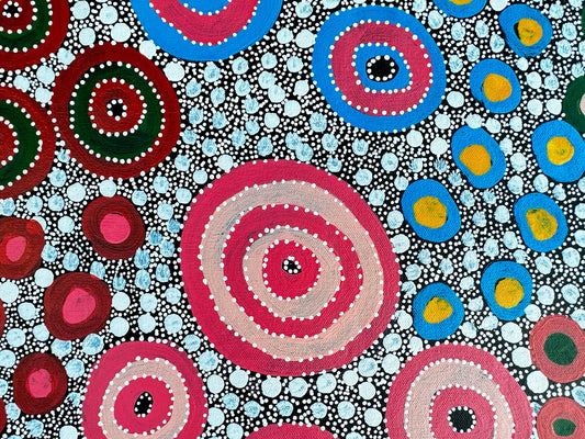 Dreaming’s: Bush Plum (Anwekety or conkerberry), Women’s dreaming (Awelye), Body Paint, Yam Seed, Yam Flower, Bush Yam & Atneltyeye (My Country)
