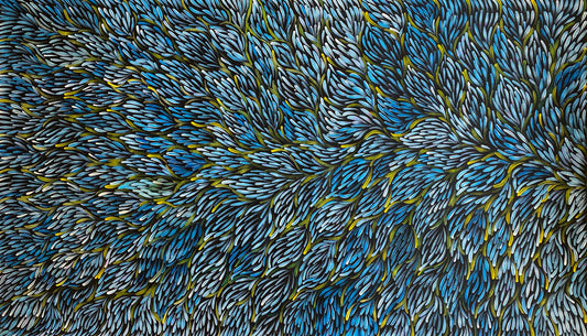 Carolyn is from the Utopia Region which is approximately 5000sq kilometers northeast of Alice Springs. There are several large and small Indigenous communities with a fluctuating population. Utopia is renowned worldwide for their artists.