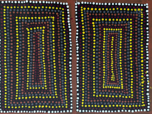 She paints the stories around various bush foods collected by the women as well as women’s ceremony.