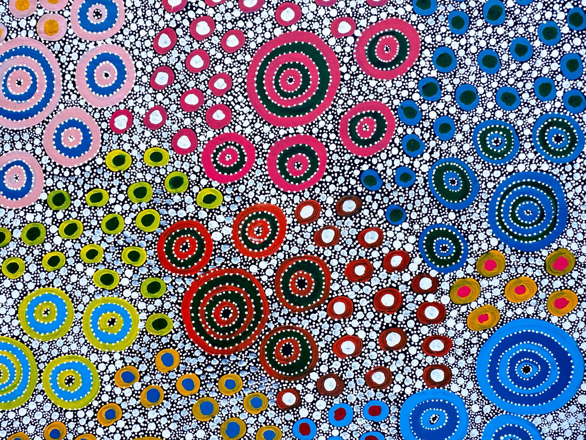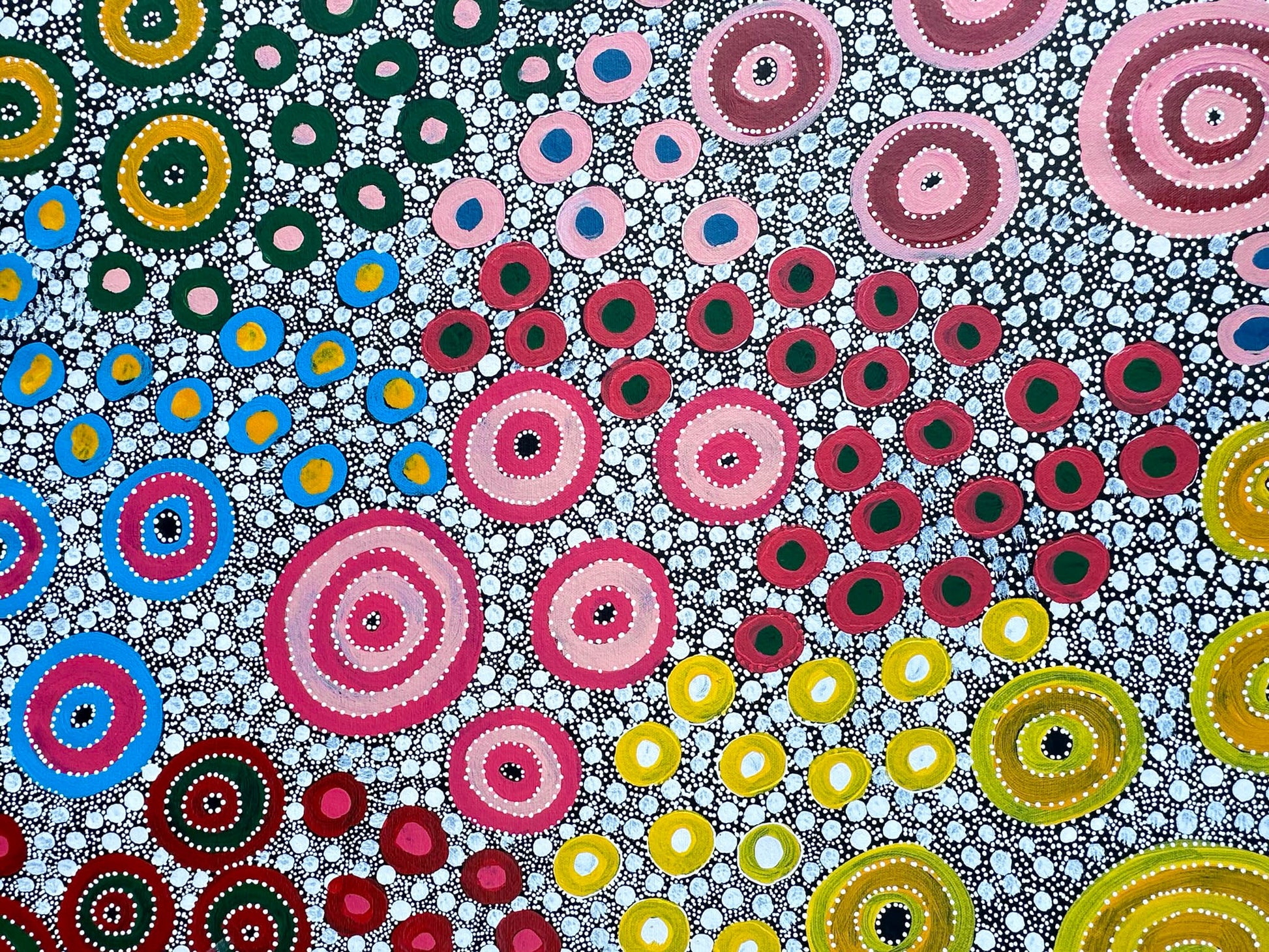 Dreaming’s: Bush Plum (Anwekety or conkerberry), Women’s dreaming (Awelye), Body Paint, Yam Seed, Yam Flower, Bush Yam & Atneltyeye (My Country)