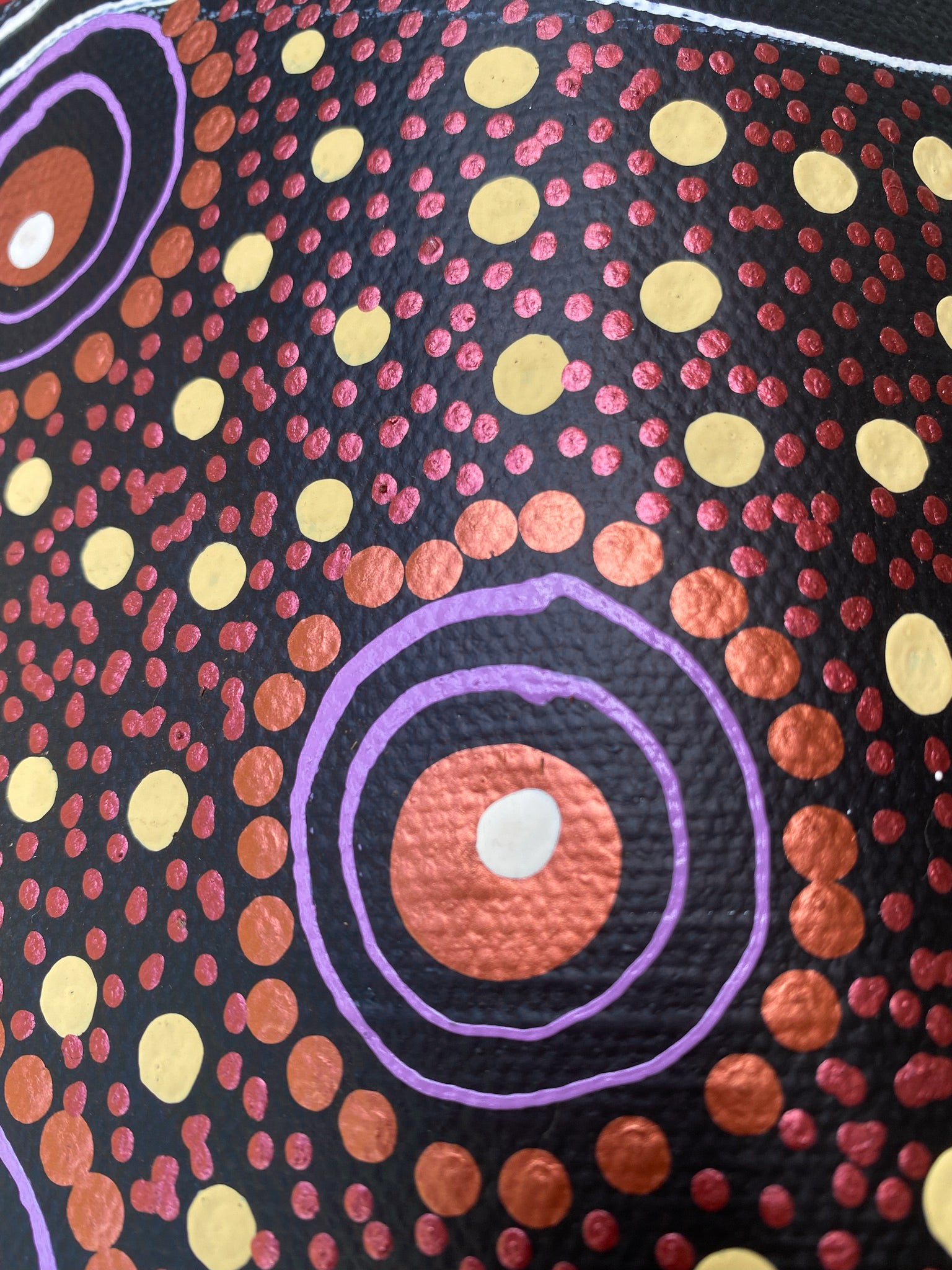PLEASE NOTE: COLLEEN HAS USED TWO DIFFERENT COLOURED COPPER ACRYLIC PAINTS. THE RELECTION SHOWS IN THE PHOTOS. PLEASE SEE THE CLOSE UP PHOTOS.