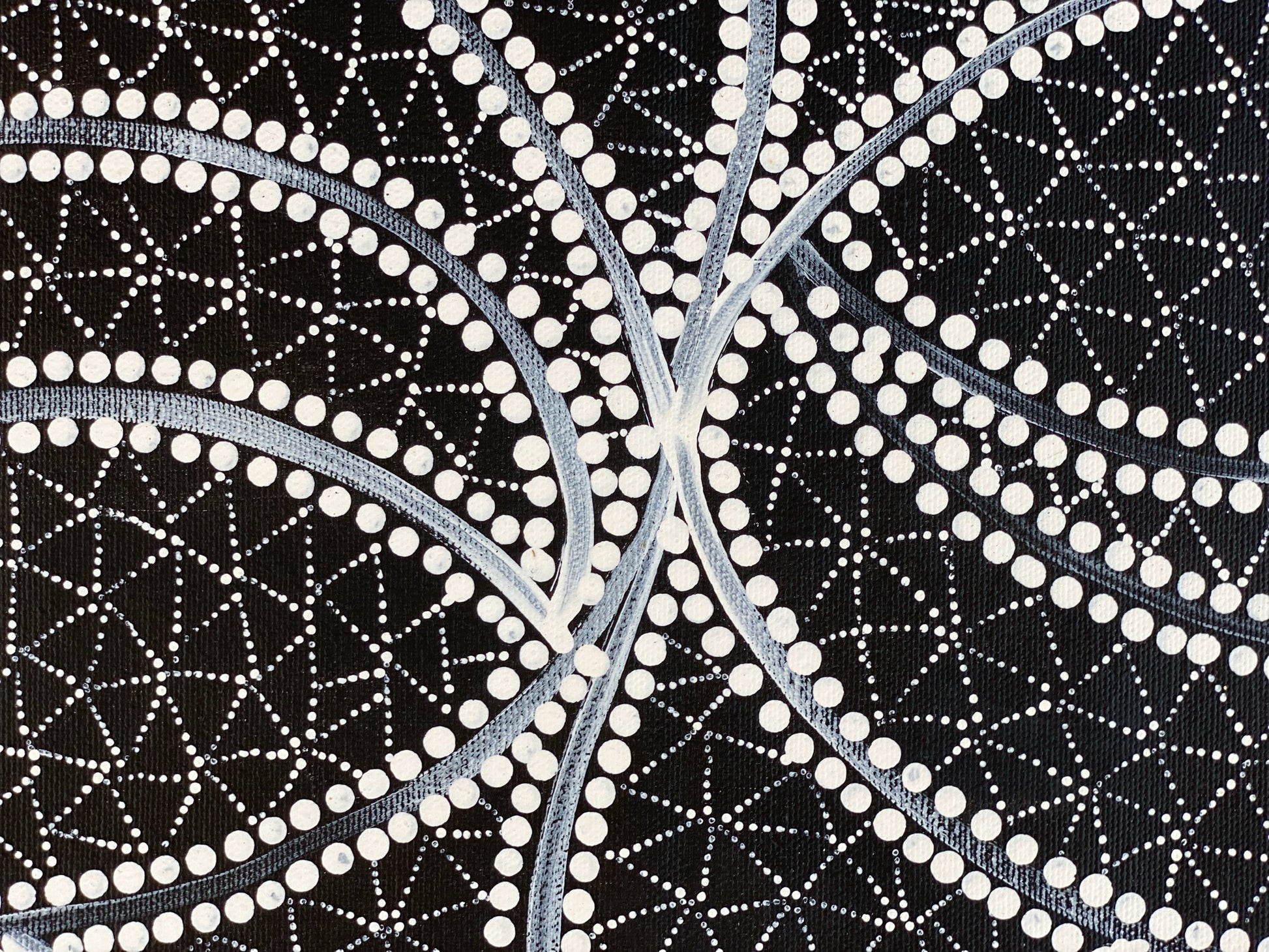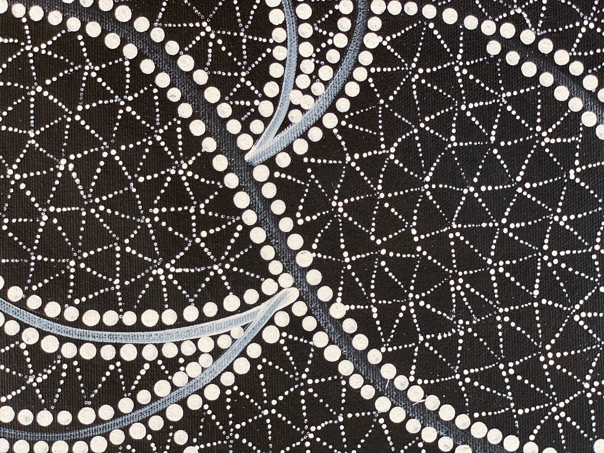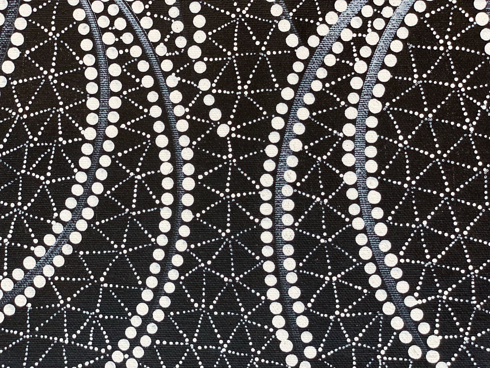 Doreen comes from a family of well-known Warlpiri artists. Her mother is Nora Long Napanangka and her sister is Janet Long Nakamarra. Doreen spends her time between the communities of Willowra, Yuendumu and Alice Springs where her family reside. Doreen has developed her own unique style to tell the stories passed down. Her palette changes depending on the story. She uses vibrant colours and other times striking black and white paintings.