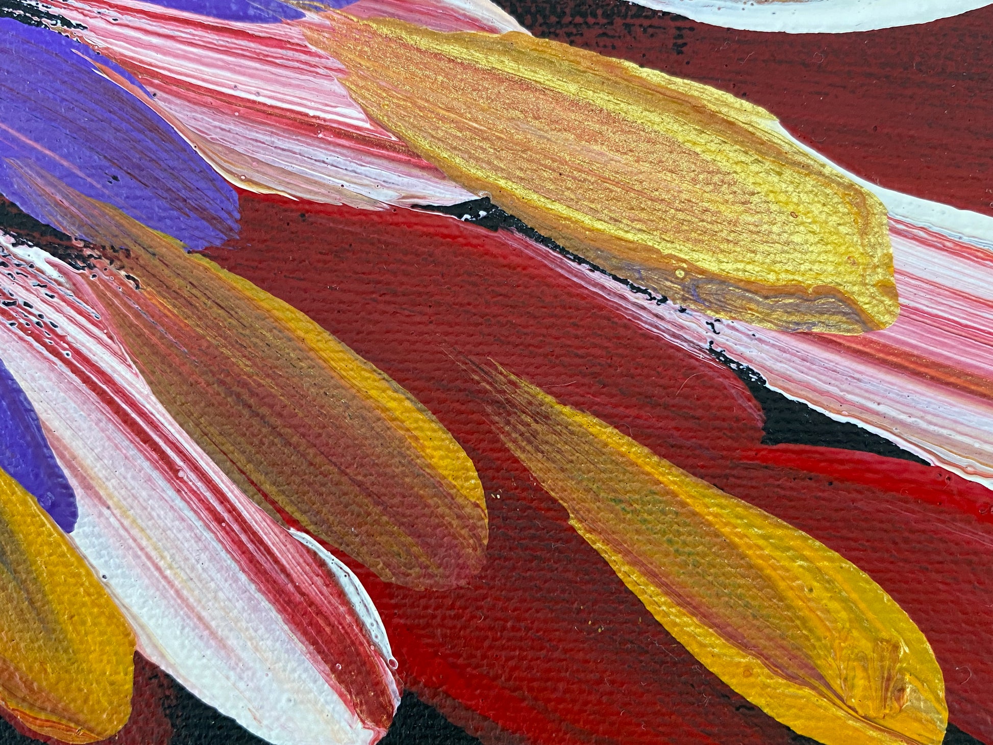 Altyerre Aboriginal Art provides its customers with a profile of the artist for every piece of artwork sold. This profile records information that Altyerre Aboriginal Art has gathered on the artist and general information on the stories that the artist paints. Altyerre Aboriginal Art encourages its artists to sign each piece of artwork either with a signature or a cross (some older artists cannot write their name).