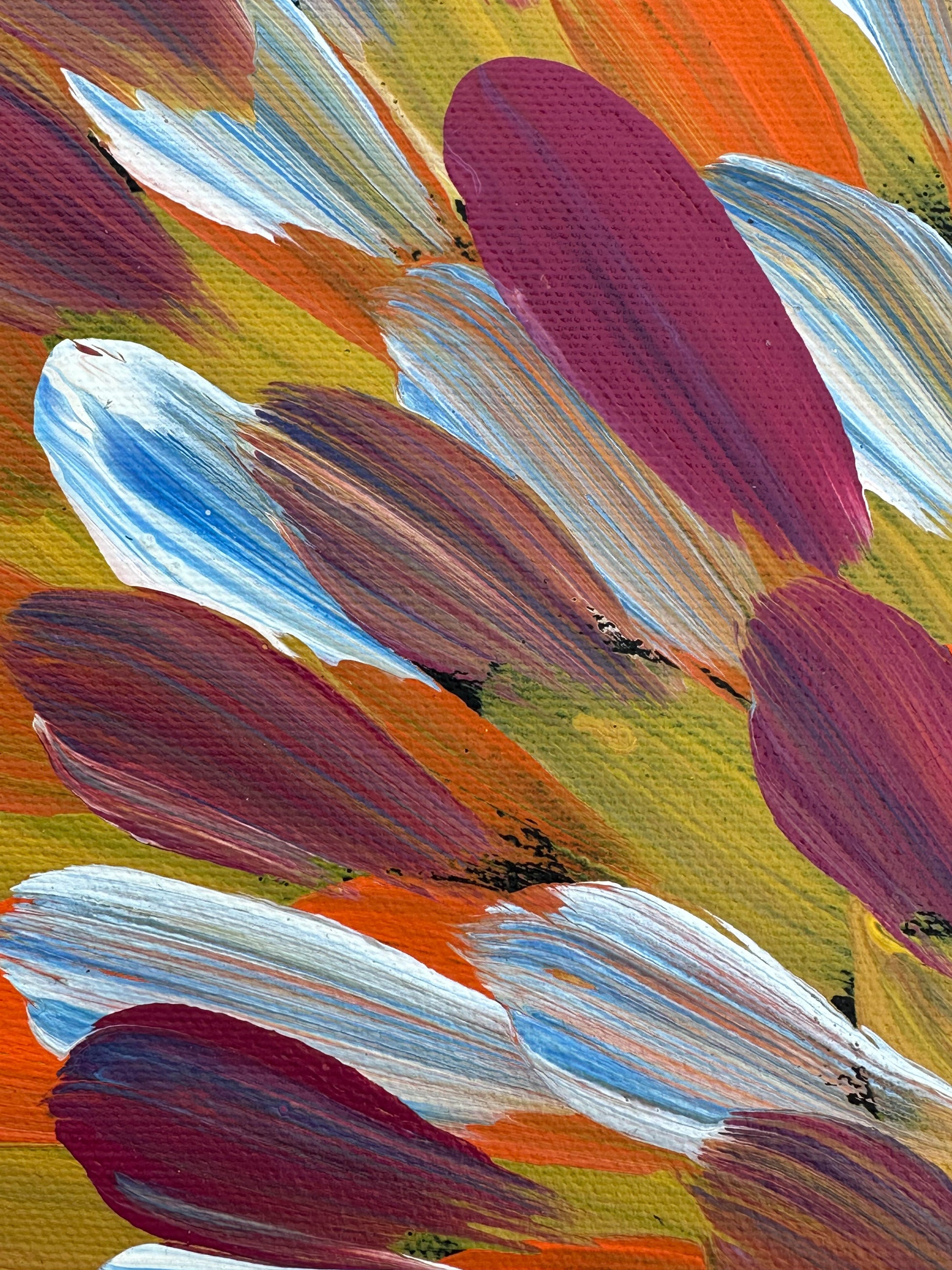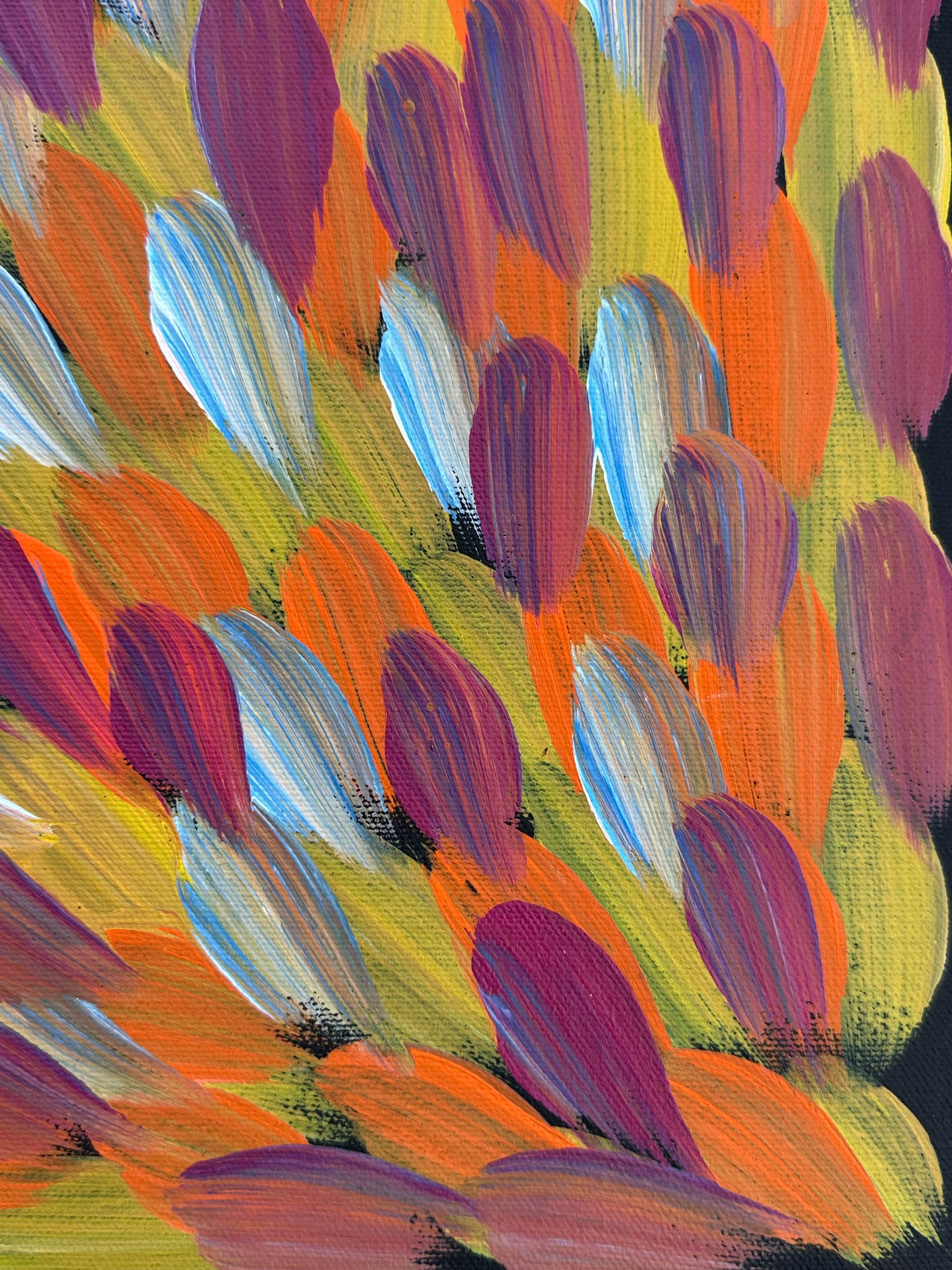 Altyerre Aboriginal Art provides its customers with a profile of the artist for every piece of artwork sold. This profile records information that Altyerre Aboriginal Art has gathered on the artist and general information on the stories that the artist paints. Altyerre Aboriginal Art encourages its artists to sign each piece of artwork either with a signature or a cross (some older artists cannot write their name).