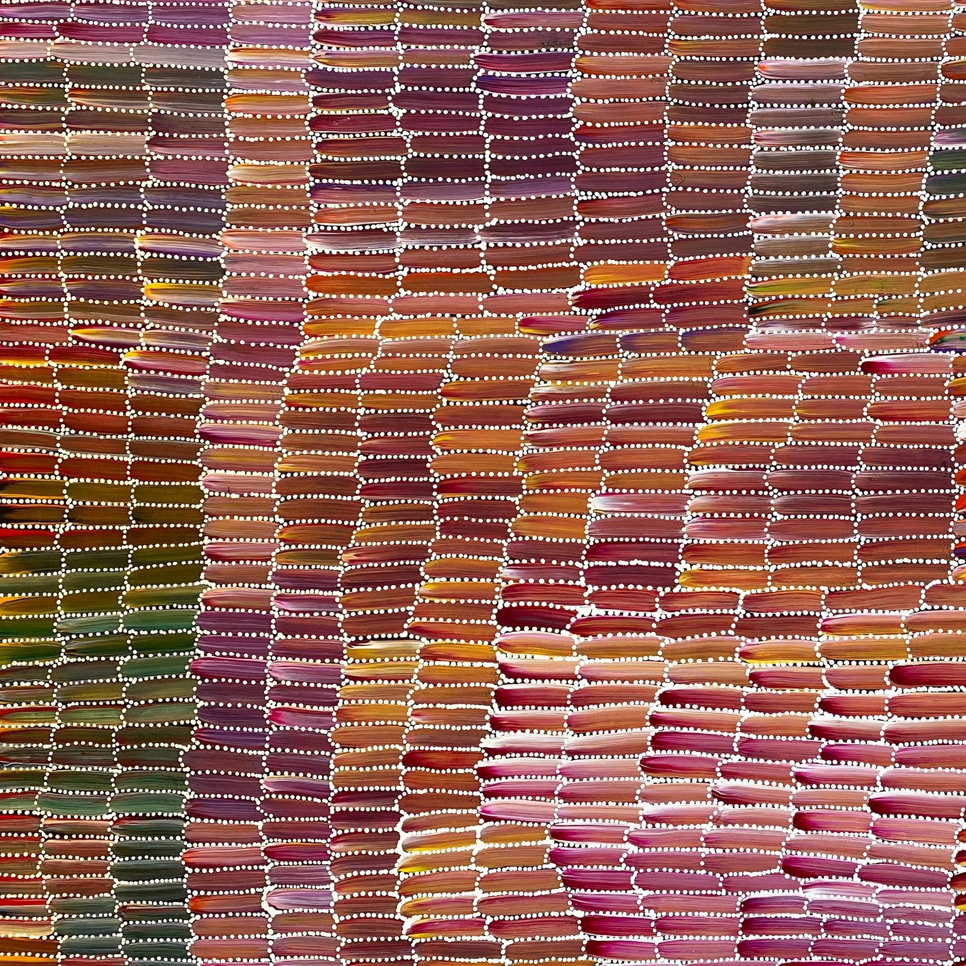 Jeannie comes from a family of artists. Her mother Dolly Mills is an established Utopian artist and her late uncle Greeny Purvis Petyarre was an acclaimed artist. She is also related to the Internationally celebrated artist, Emily Kame Kngwarreye.