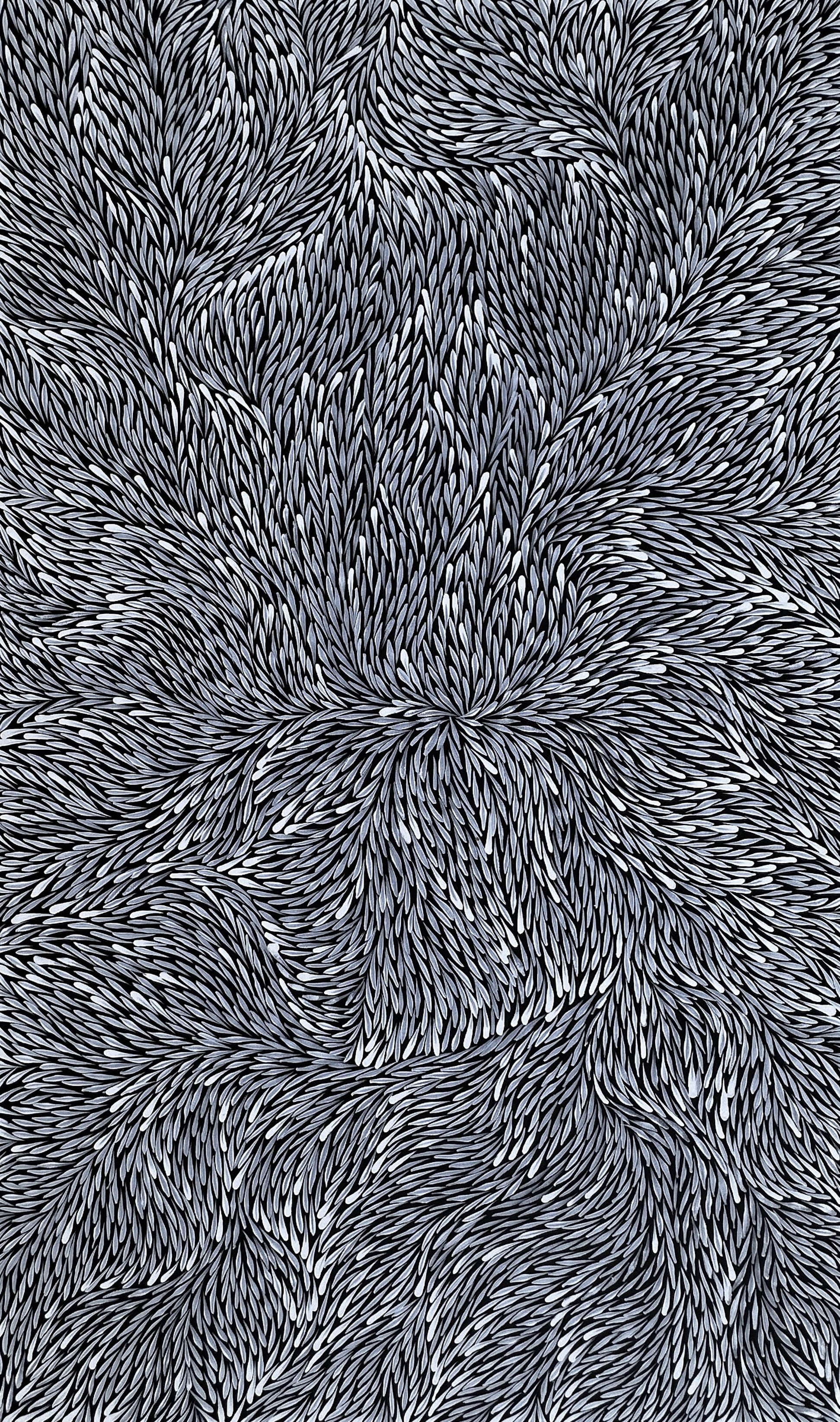 She is well known for her great sense of movement and colour depicting the leaves and seeds changing colours throughout the seasons.  Various leaves and seeds are predominately collected by the women for medicine and food from a variety of trees/shrubs for use all year round. The leaves and seeds were once vital to Jeannie and her ancestors and through her paintings these stories are passed down and celebrated.