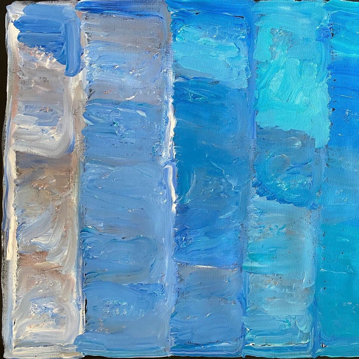 Kudditji began painting in the traditional ‘dot’ style and over time evolving into abstract works titled ‘My Country’. It was not well received initially, and he returned to painting in the traditional dot style. In the early 2000 he was again drawn to the abstract using dense paint with various bold and neutral colours to depict the ever-evolving landscape and sky which was welcomed by the art community.