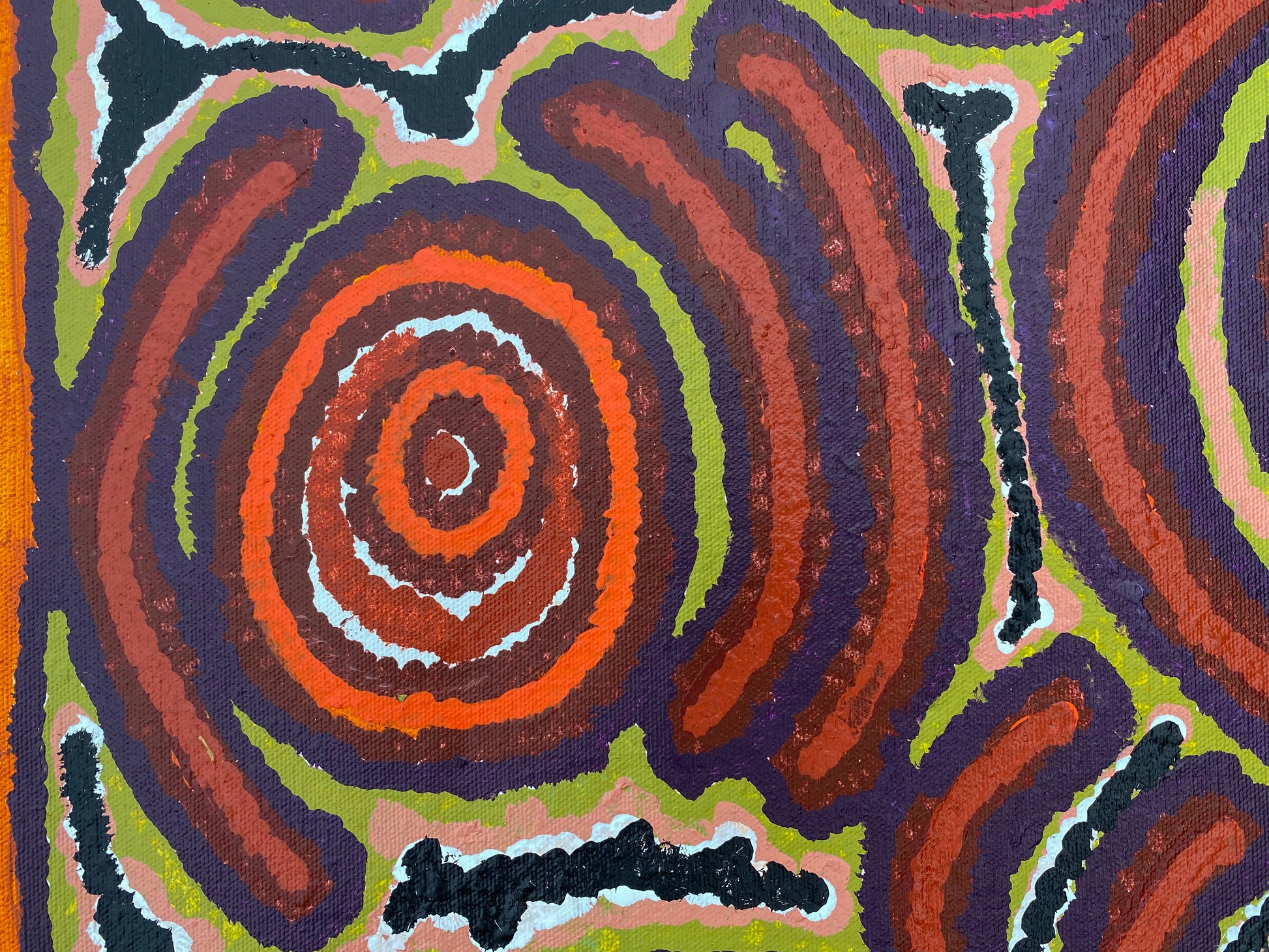 Altyerre Aboriginal Art provides its customers with a profile of the artist for every piece of artwork sold. This profile records information that Altyerre Aboriginal Art has gathered on the artist and general information on the stories that the artist paints. Altyerre Aboriginal Art encourages its artists to sign each piece of artwork either with a signature or a cross (some older artists cannot write their name).