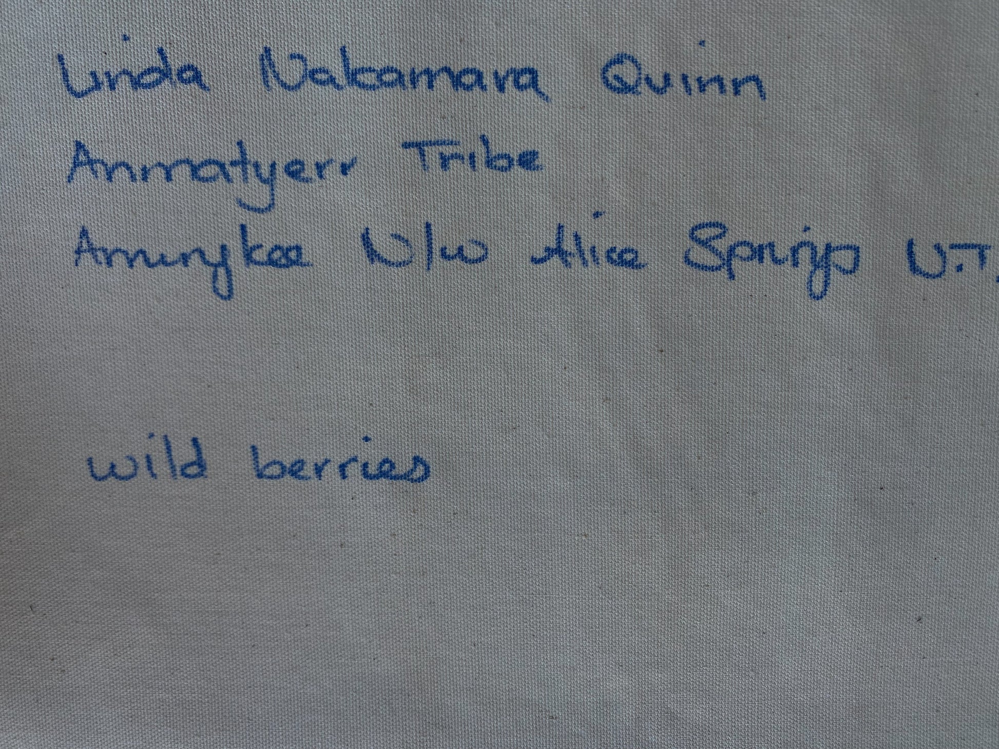 Altyerre Aboriginal Art provides its customers with a profile of the artist for every piece of artwork sold. This profile records information that Altyerre Aboriginal Art has gathered on the artist and general information on the stories that the artist paints. Altyerre Aboriginal Art encourages its artists to sign each piece of artwork either with a signature or a cross (some older artists cannot write their name).