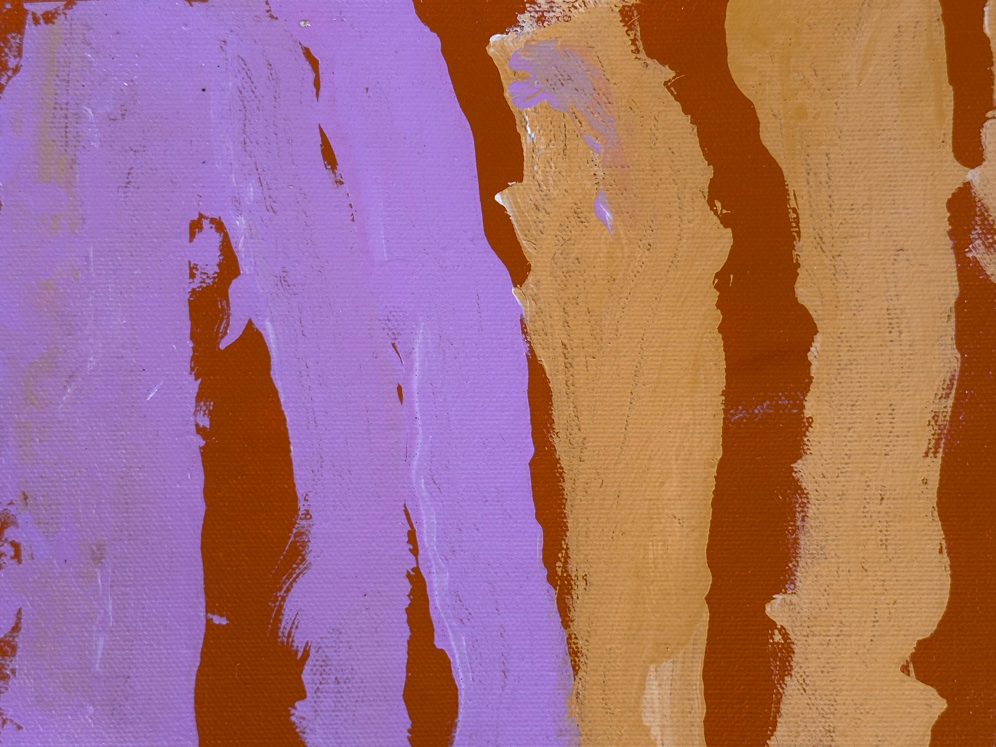 Towards the end of her painting career Makinti’s eyesight was failing but it did not dampen her passion for painting. She would visit our family home (or fondly called the farm) and ask for vibrant acrylic paints so she could take home and later come back with her vibrant, colourful canvas.