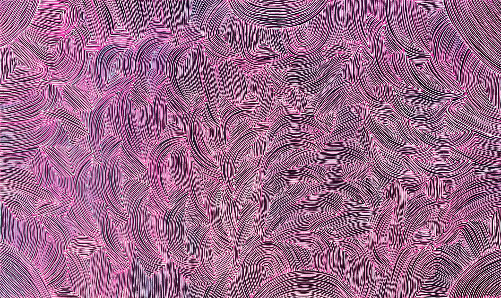 In her earlier years she spent time alongside talented artists such as Gloria and Kathleen Petyarre. While gaining inspiration from these leading artists she had developed her own unique style with her linear body paint designs which have become popular. Body paint represents the designs painted onto the women’s top half of their bodies for ceremonies.