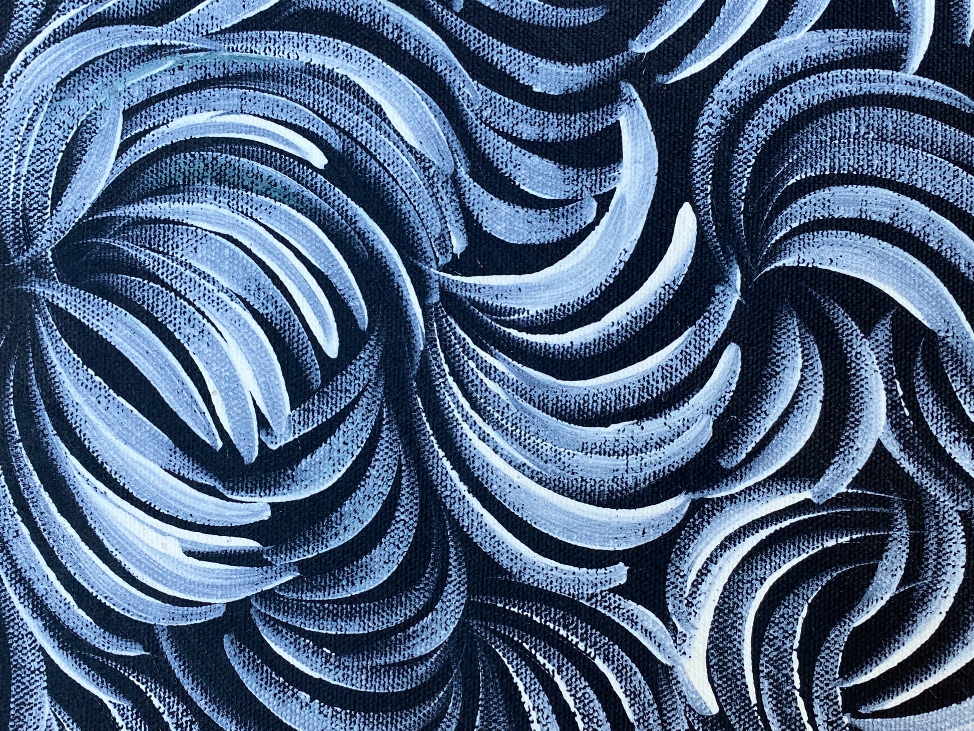 Her cousin Gloria Petyarre, a renowned artist, began instructing Margaret to paint at an early age when she wasn’t attending school in Alice Springs. Over the years Margaret has developed her own unique style as can be seen with her medicine leaves and spinifex grass where her flowing lines depict the plants blowing in the wind. The women collect the leaves of a particular plant and is prepared to be used on wounds and sores and other medicinal leaves are boiled and consumed for coughs and colds. Her work is sought after by for their great sense of movement and array of beautiful use of colour.