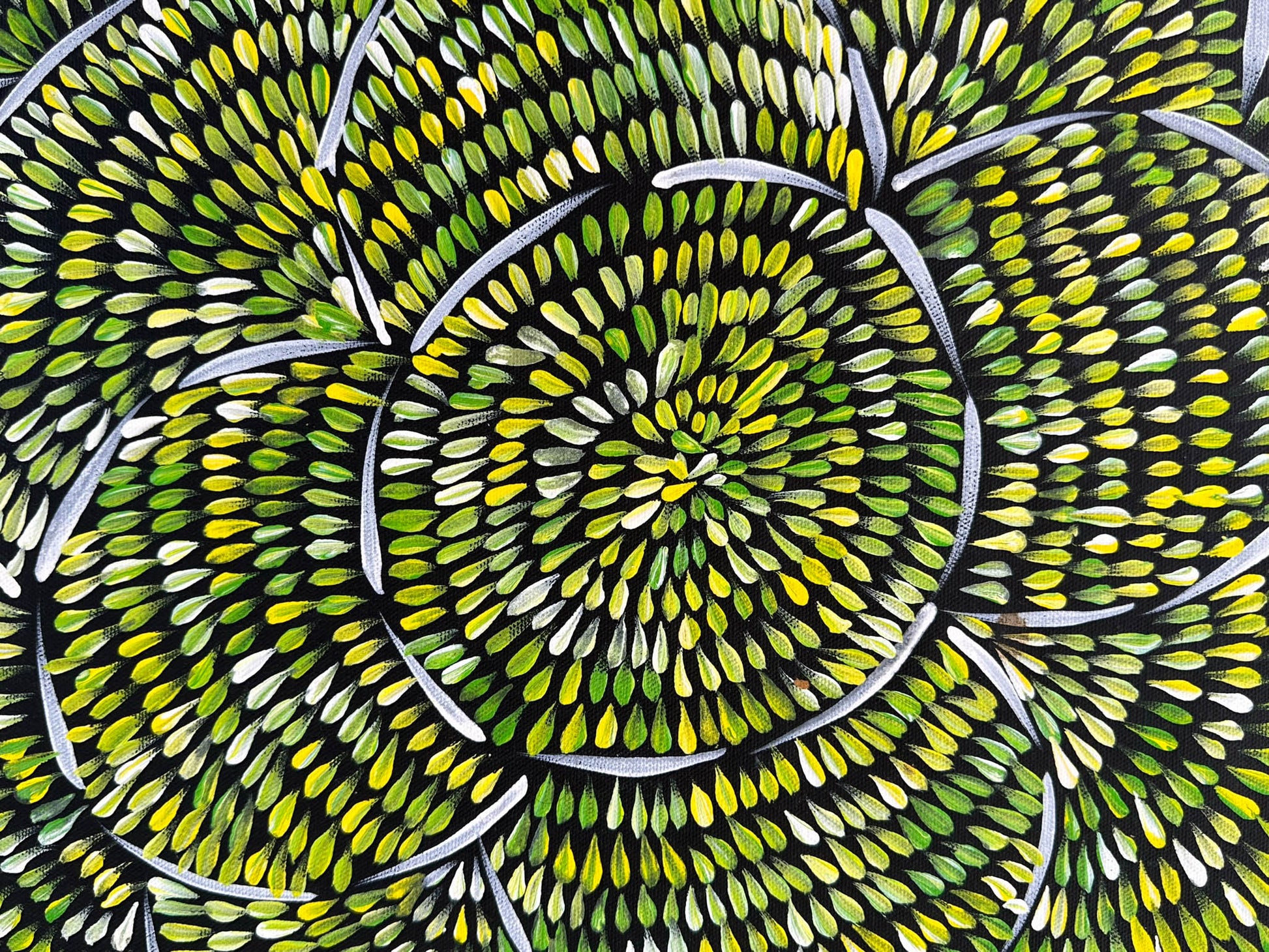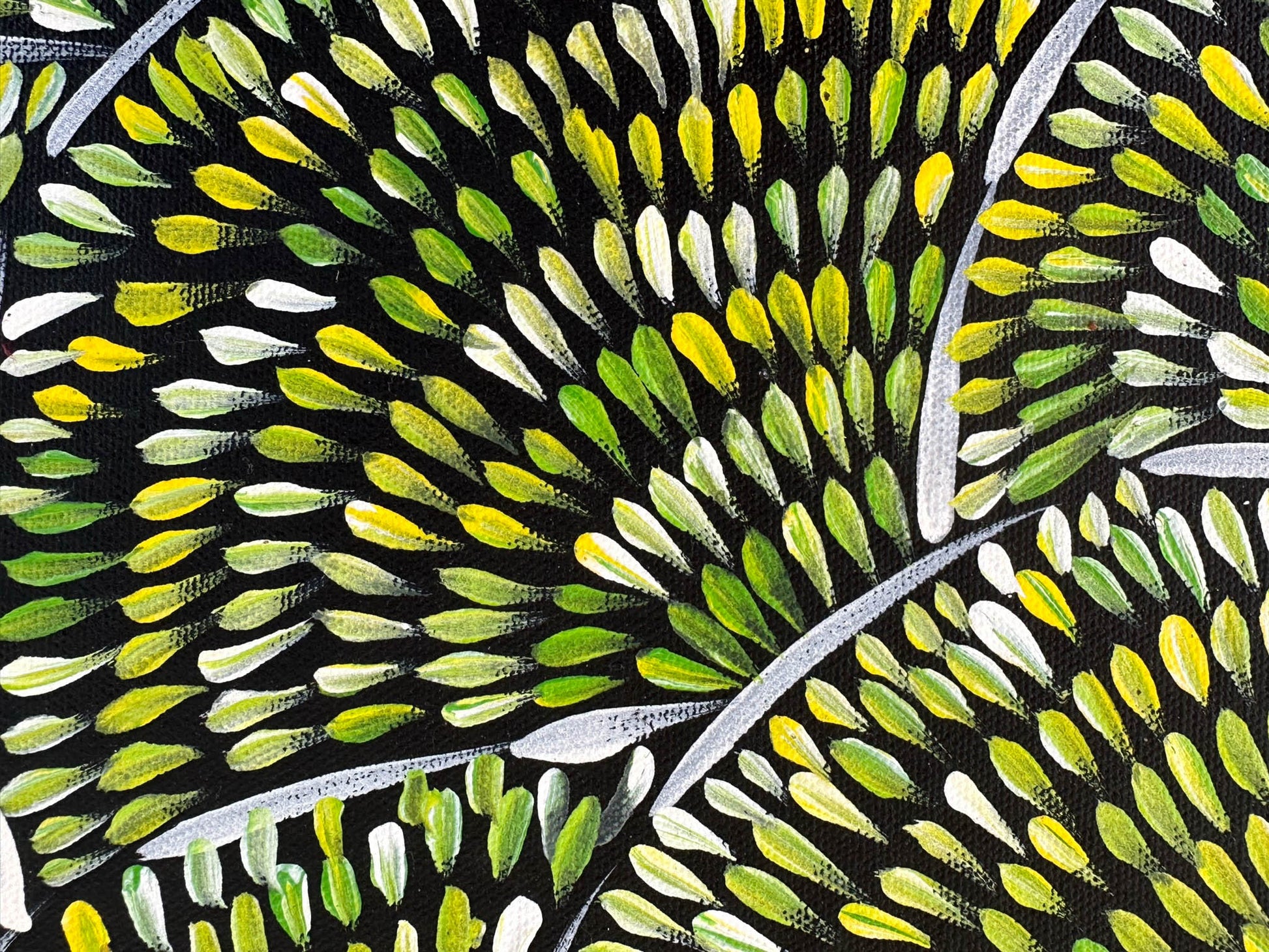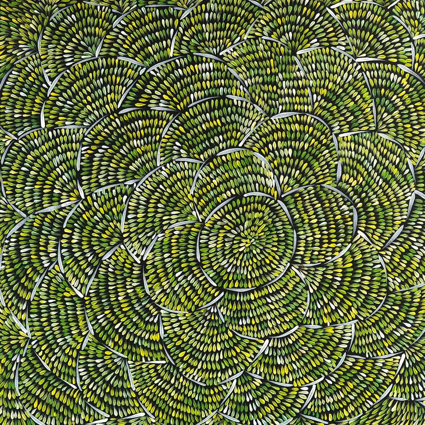 In Aboriginal Culture, when a person is deceased they not use the person’s name and all photos (any digital images) are not to be used. Out of respect we do not have any images of Margaret however we have used her name as it would be very difficult to list the painting with no name attached.