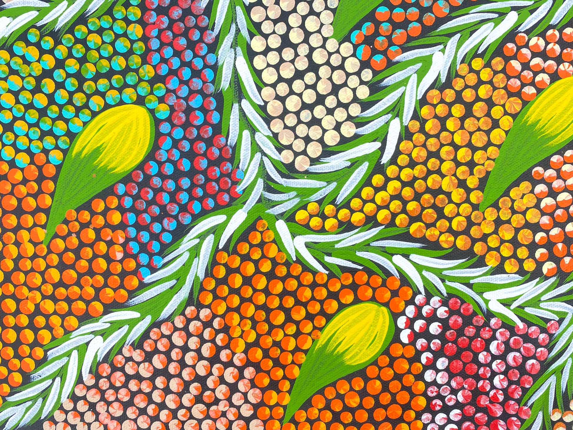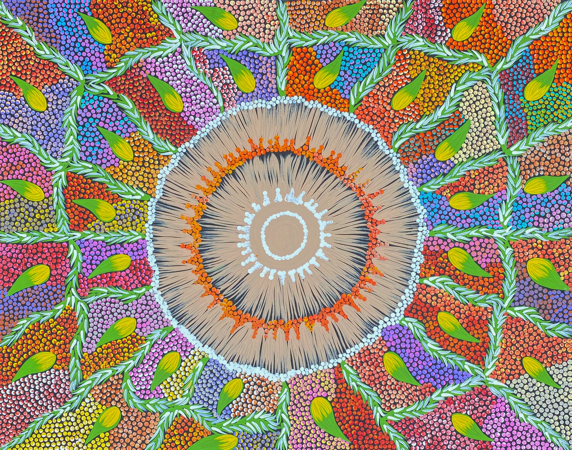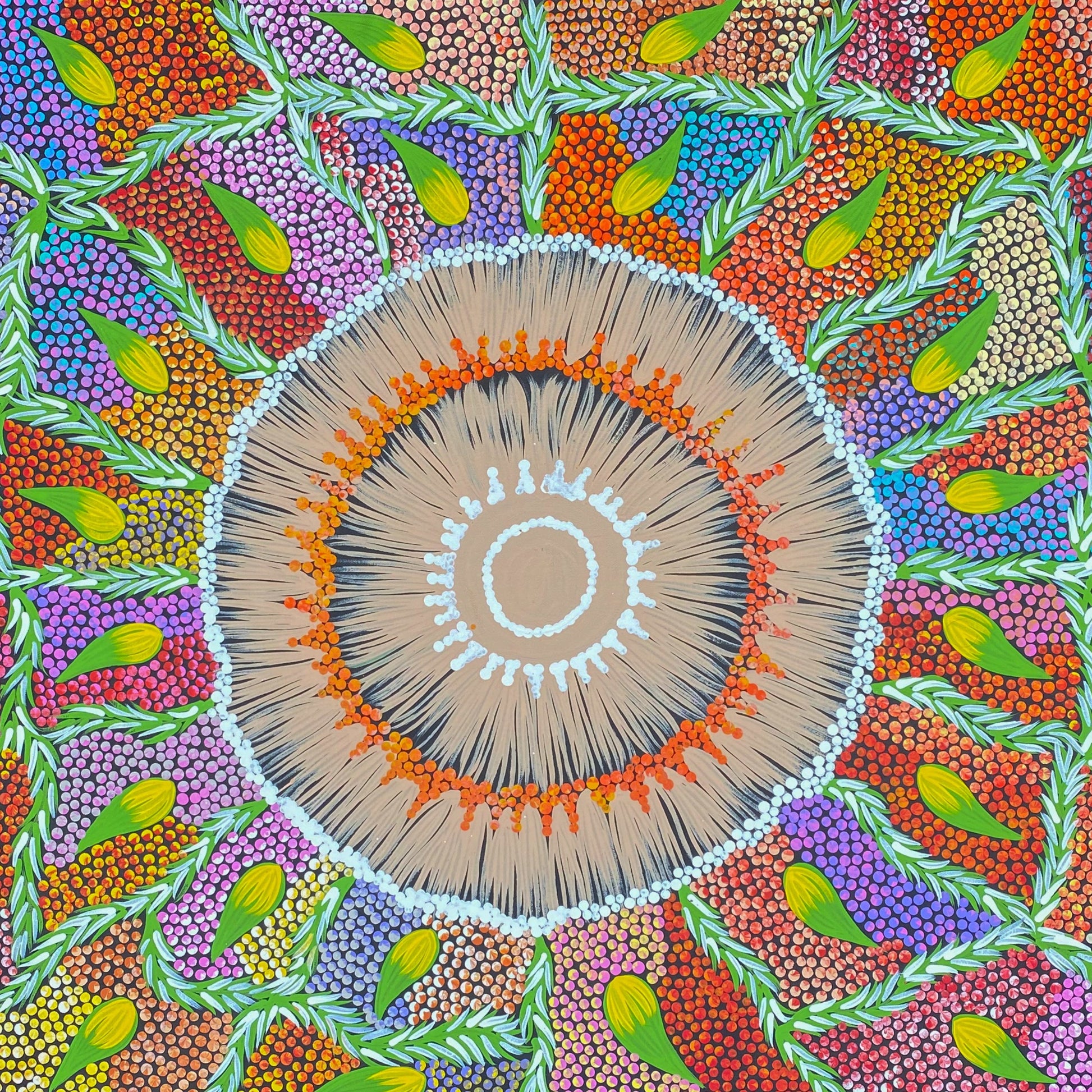 Her art tells the stories related to her Country and beautiful depictions of the bush tucker collected by the women of her community.