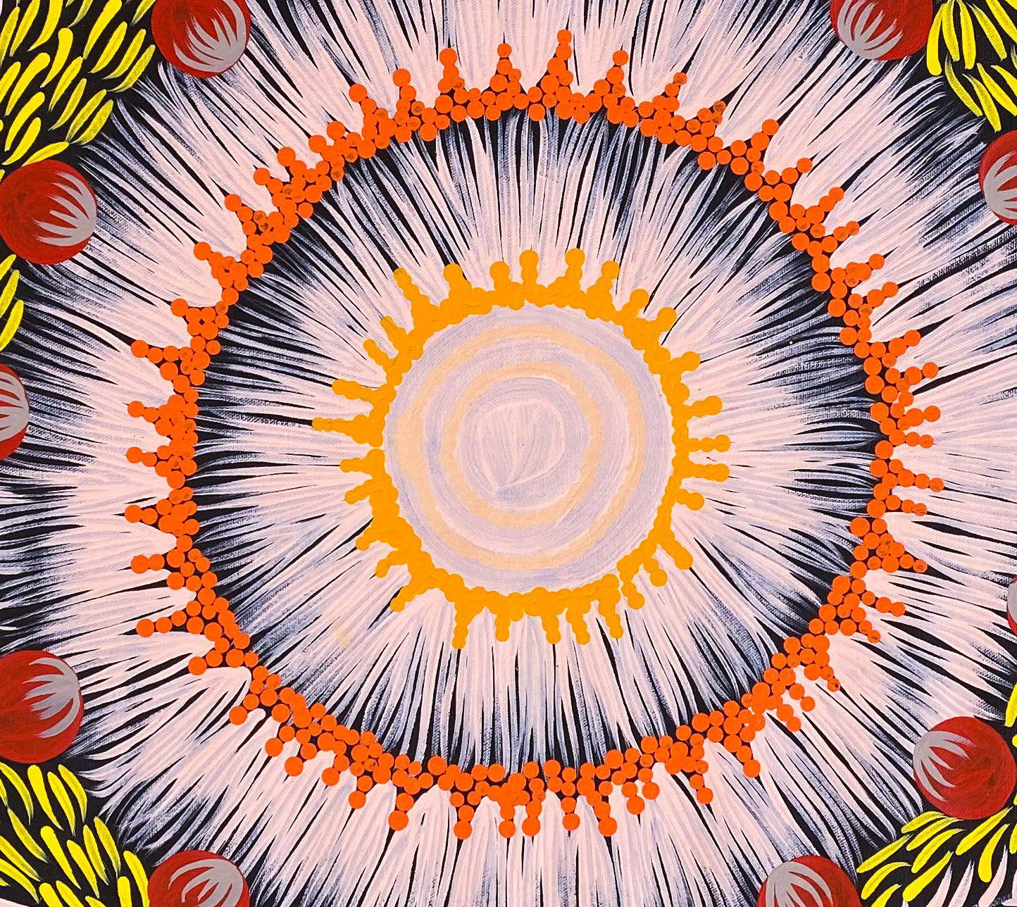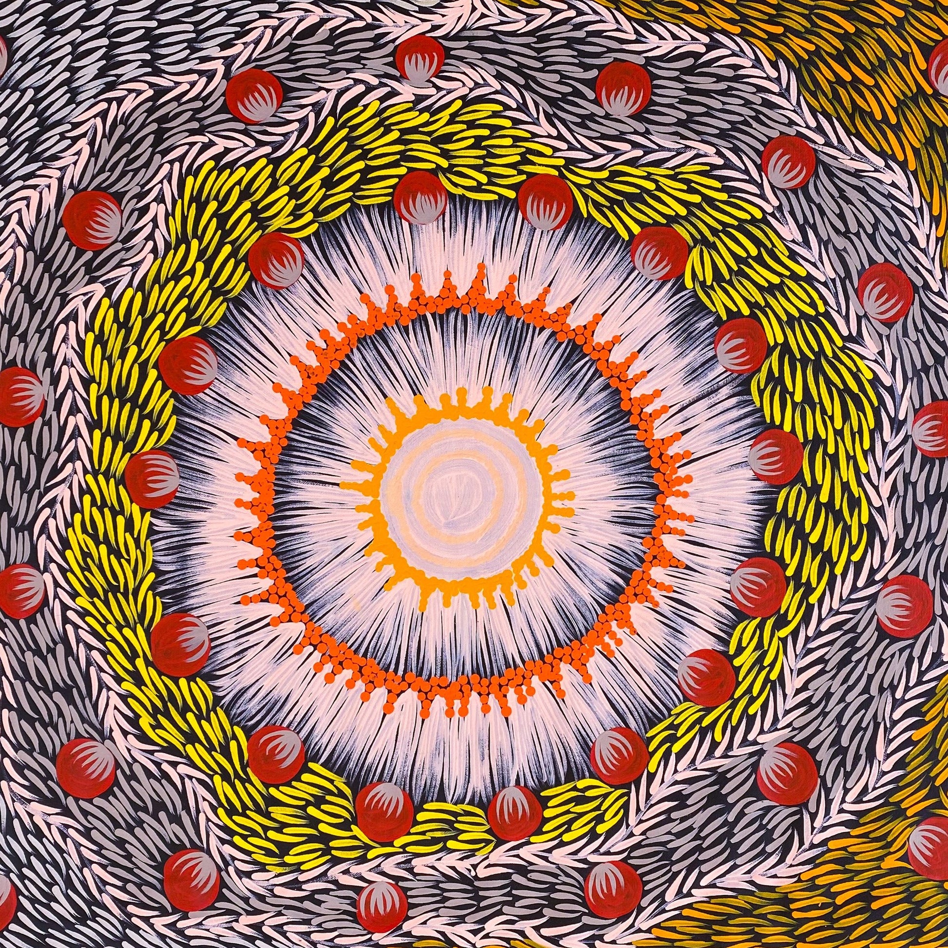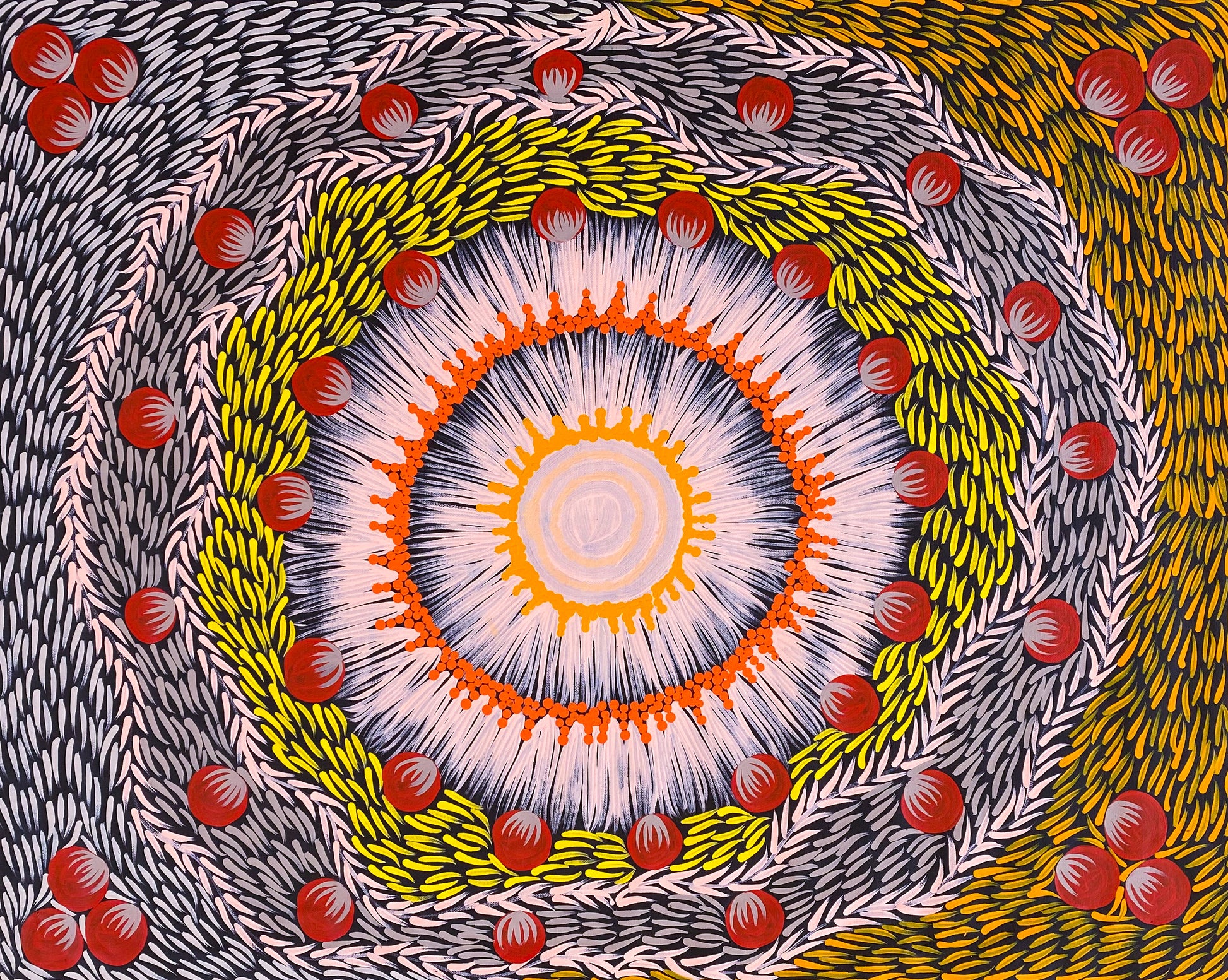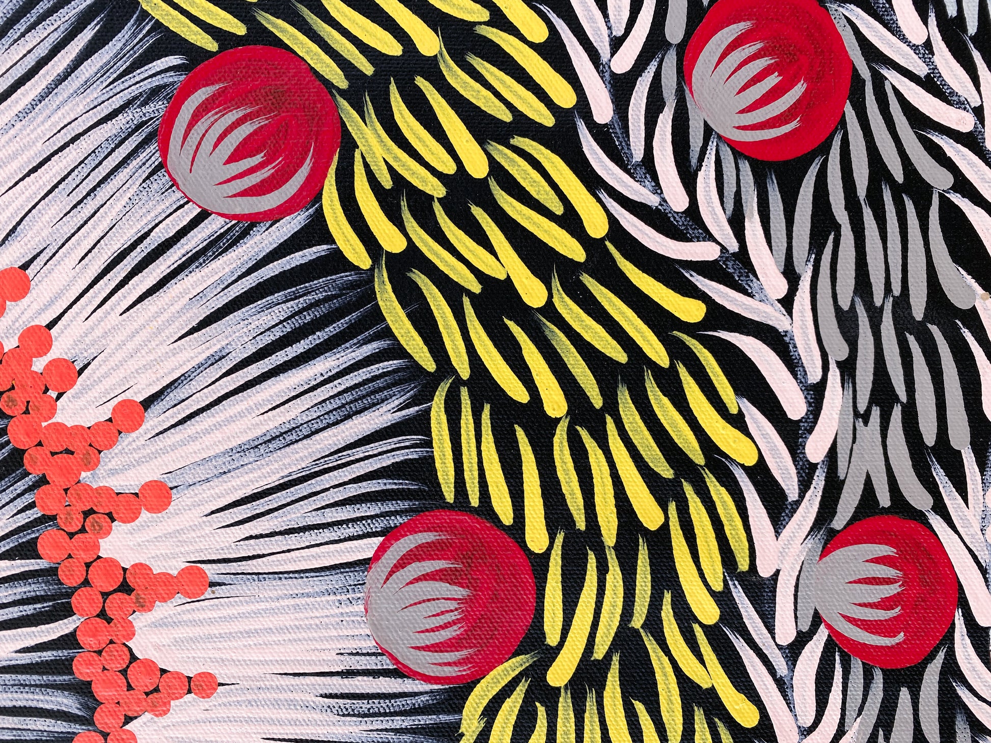 Her art tells the stories related to her Country and beautiful depictions of the bush tucker collected by the women of her community.