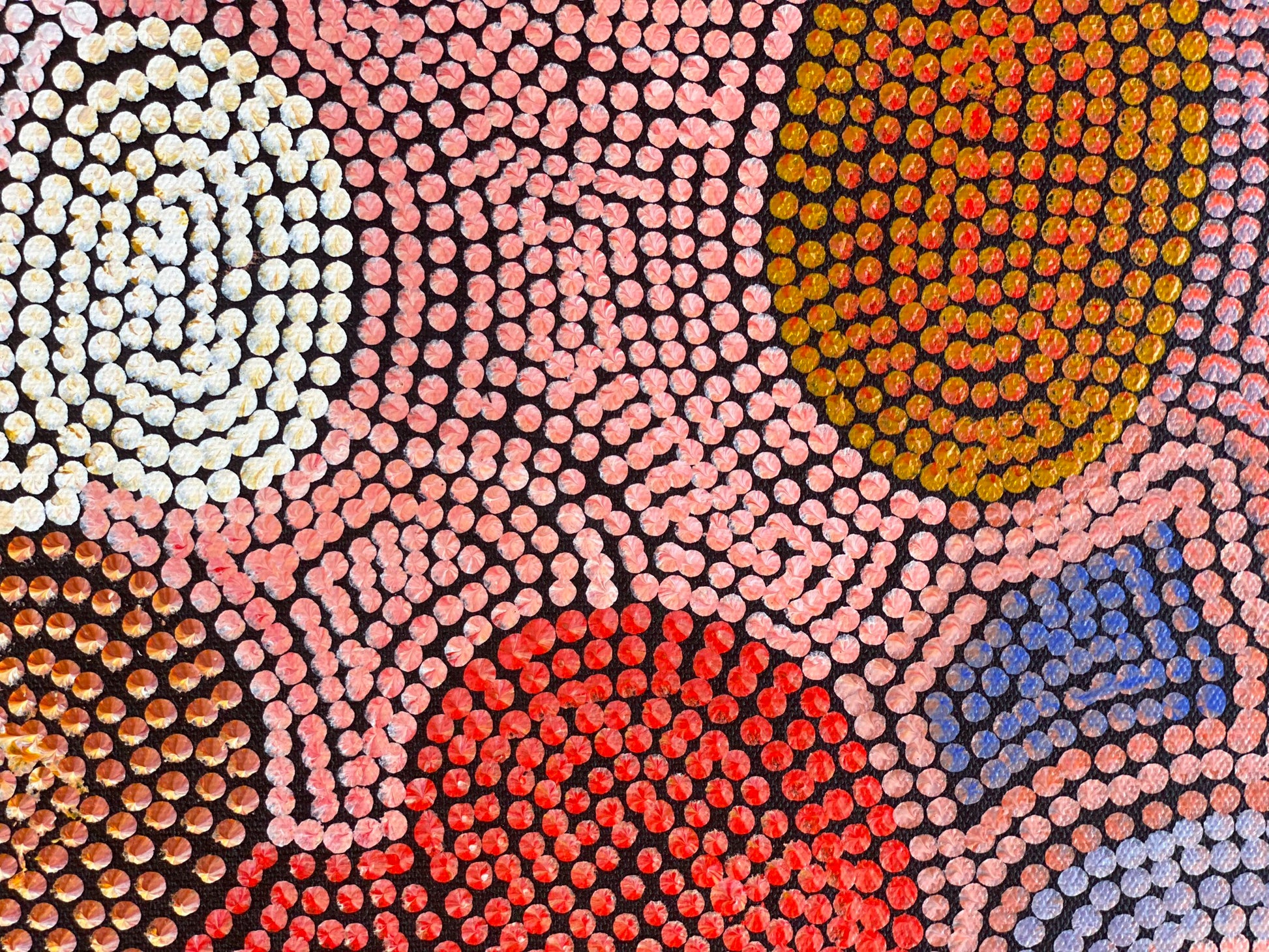 Altyerre Aboriginal Art provides its customers with a profile of the artist for every piece of artwork sold. This profile records information that Altyerre Aboriginal Art has gathered on the artist and general information on the stories that the artist paints. Altyerre Aboriginal Art encourages its artists to sign each piece of artwork either with a signature or a cross (some older artists cannot write their name).