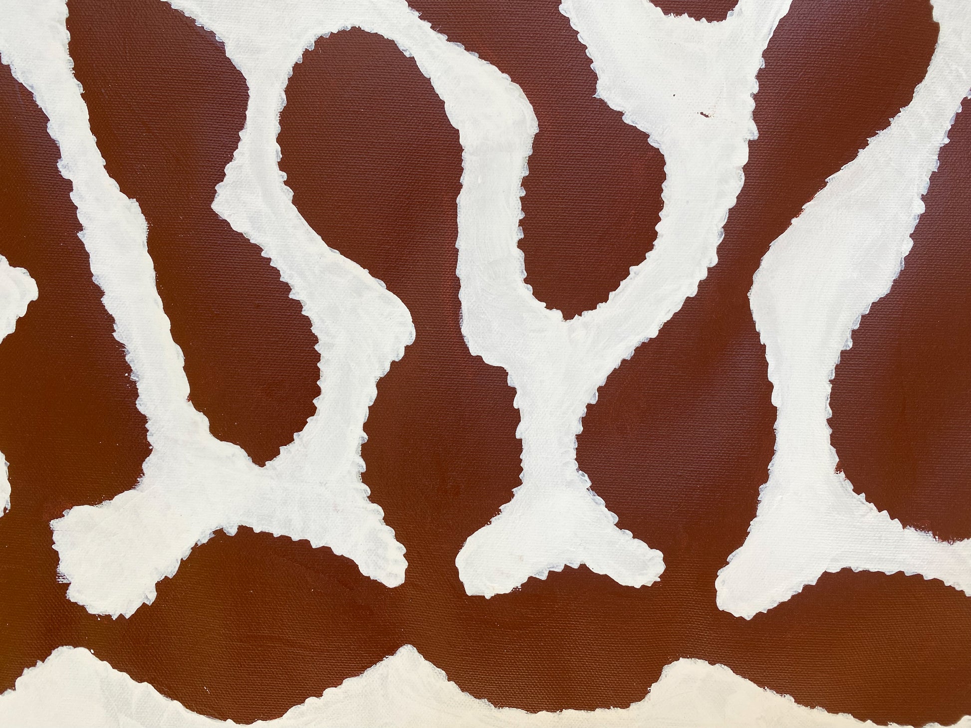 Her paintings are highly sought after by collectors nationally and internationally. Sadly, Mitjili passed away in 2019, her daughter-in law Deborah McDonald Nangala is now the custodian of the Dreaming story; Uwalki – Watya Tjuta.