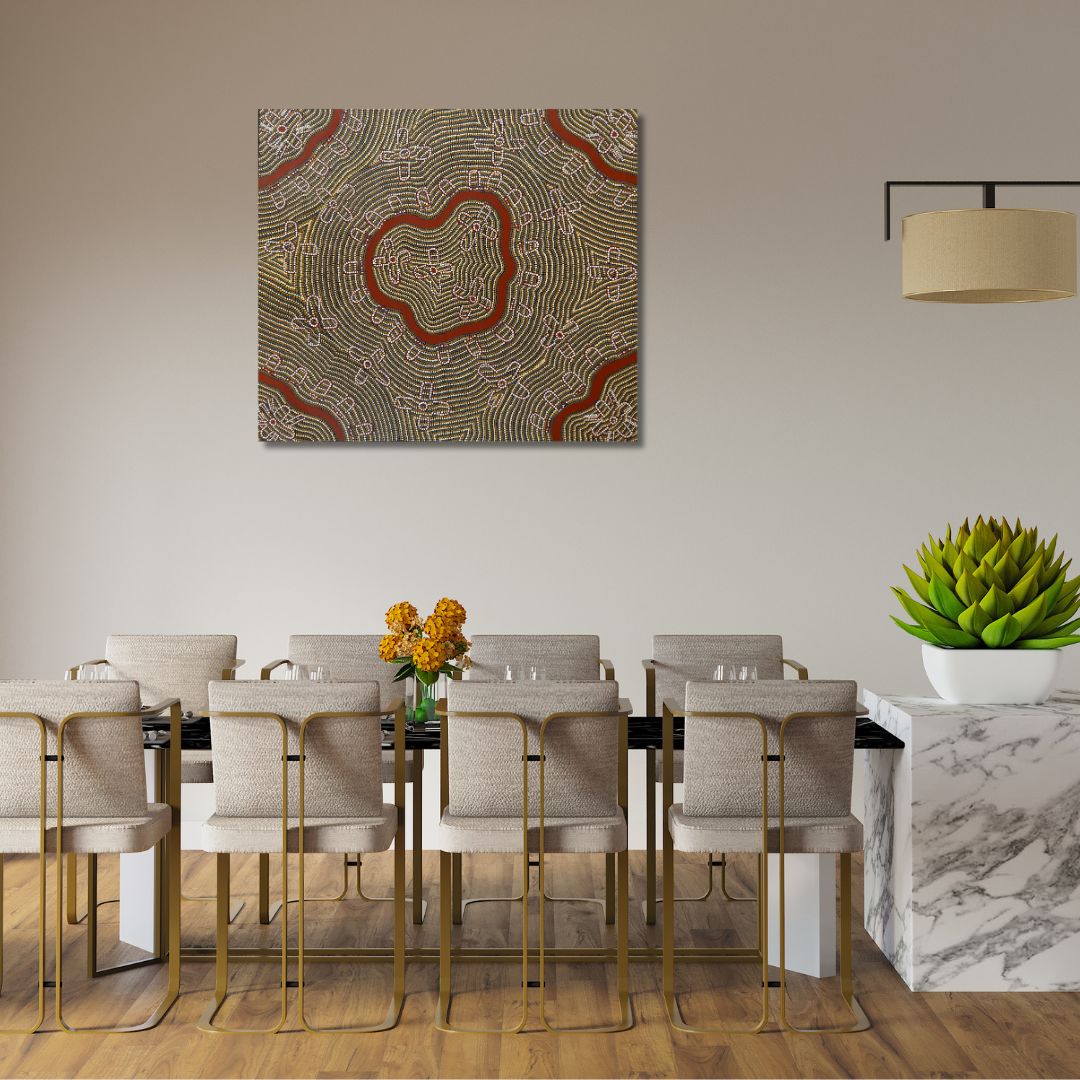 This painting is the story of Women digging for water (Nappa) along the walking tracks after the wet season.