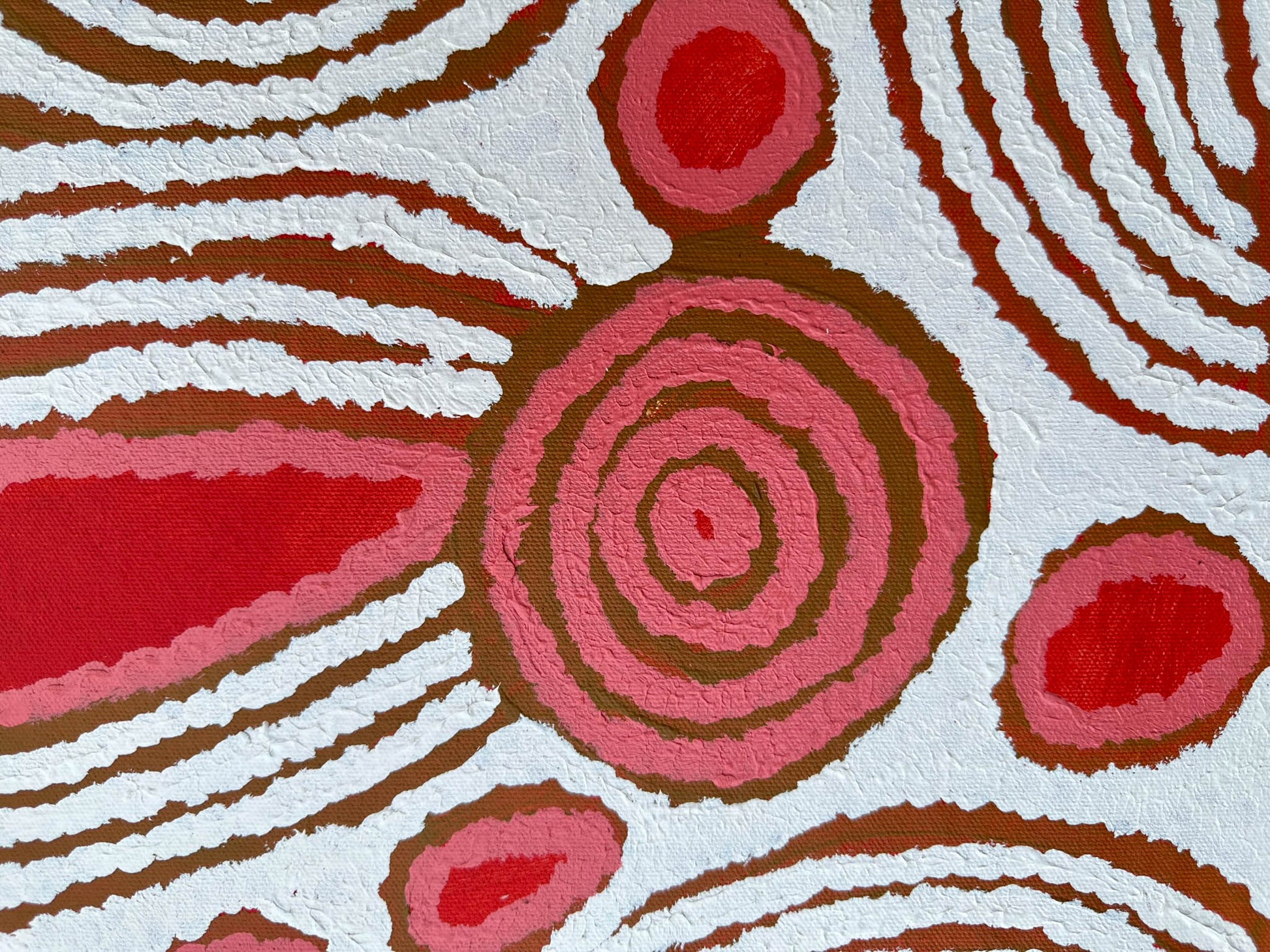 Altyerre Aboriginal Art provides its customers with a profile of the artist for every piece of artwork sold. This profile records information that Altyerre Aboriginal Art has gathered on the artist and general information on the stories that the artist paints. Altyerre Aboriginal Art encourages its artists to sign each piece of artwork either with a signature or a cross (some older artists cannot write their name).
