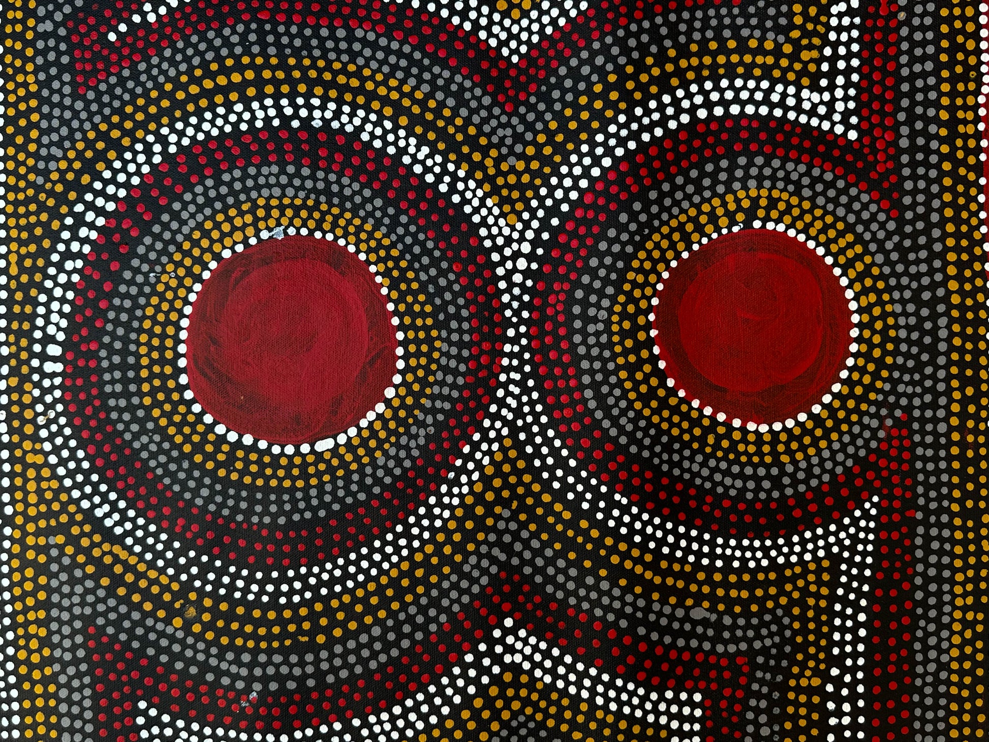 Paddy Bird is the eldest son of the famous artist Ada Bird Petyarre. His Uncle is an acclaimed artist Lyndsay Bird Mpetyane and his siblings June, Hilda, Colin, Steven and Ronnie are all accomplished artists. His works are in the traditional style, using dots and various symbols to convey his dreaming.
