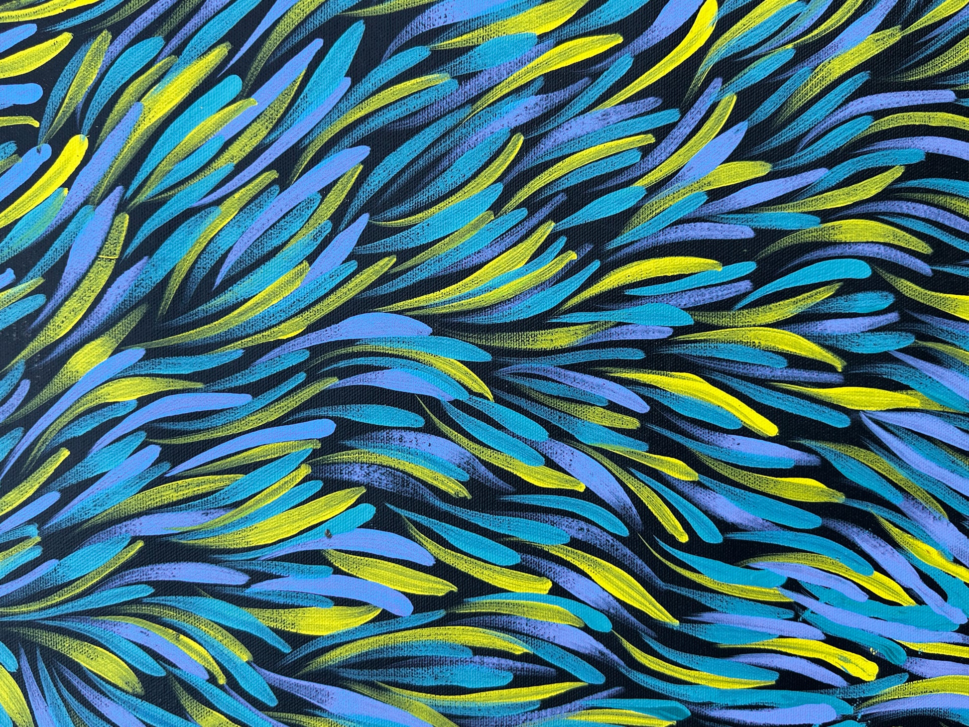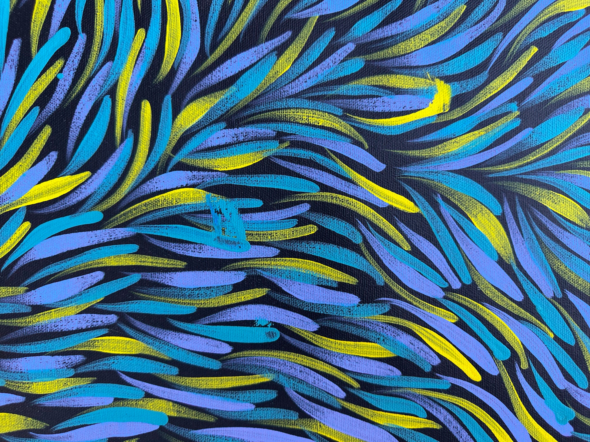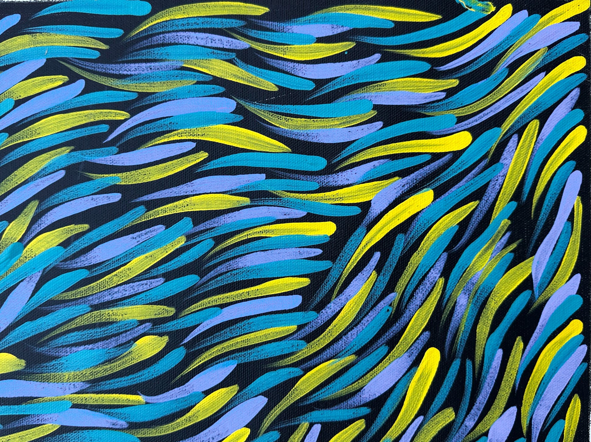 Rosemary was involved in making Batik at Utopia in the eighties. She now paints with acrylic on canvas. Rosemary is an accomplished artist, and her works can be found worldwide. She paints the stories passed down to her and her sister Jeannie.
