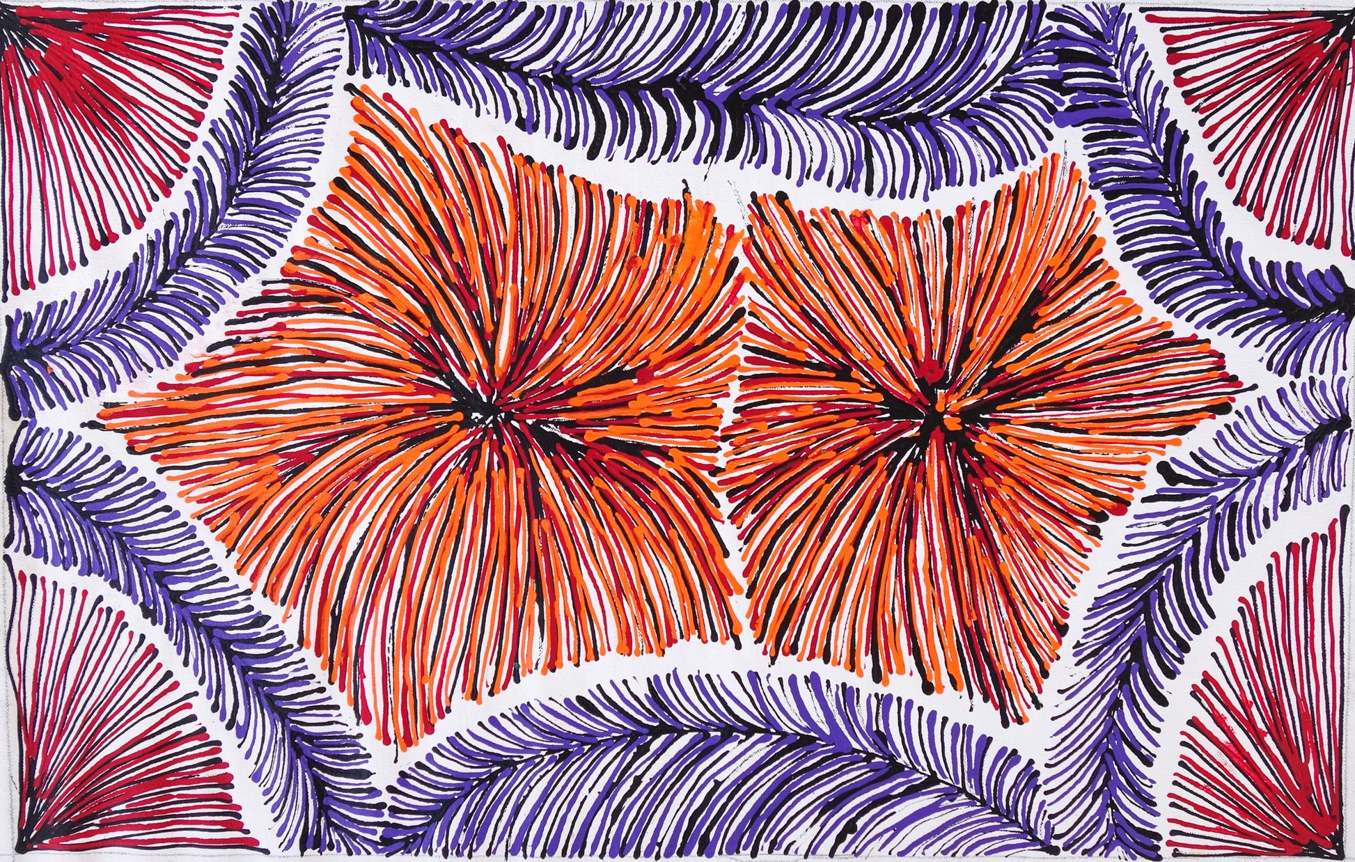 Rosemary was involved in making Batik at Utopia in the eighties. She now paints with acrylic on canvas. Rosemary is an accomplished artist, and her works can be found worldwide. She paints the stories passed down to her and her sister Jeannie.
