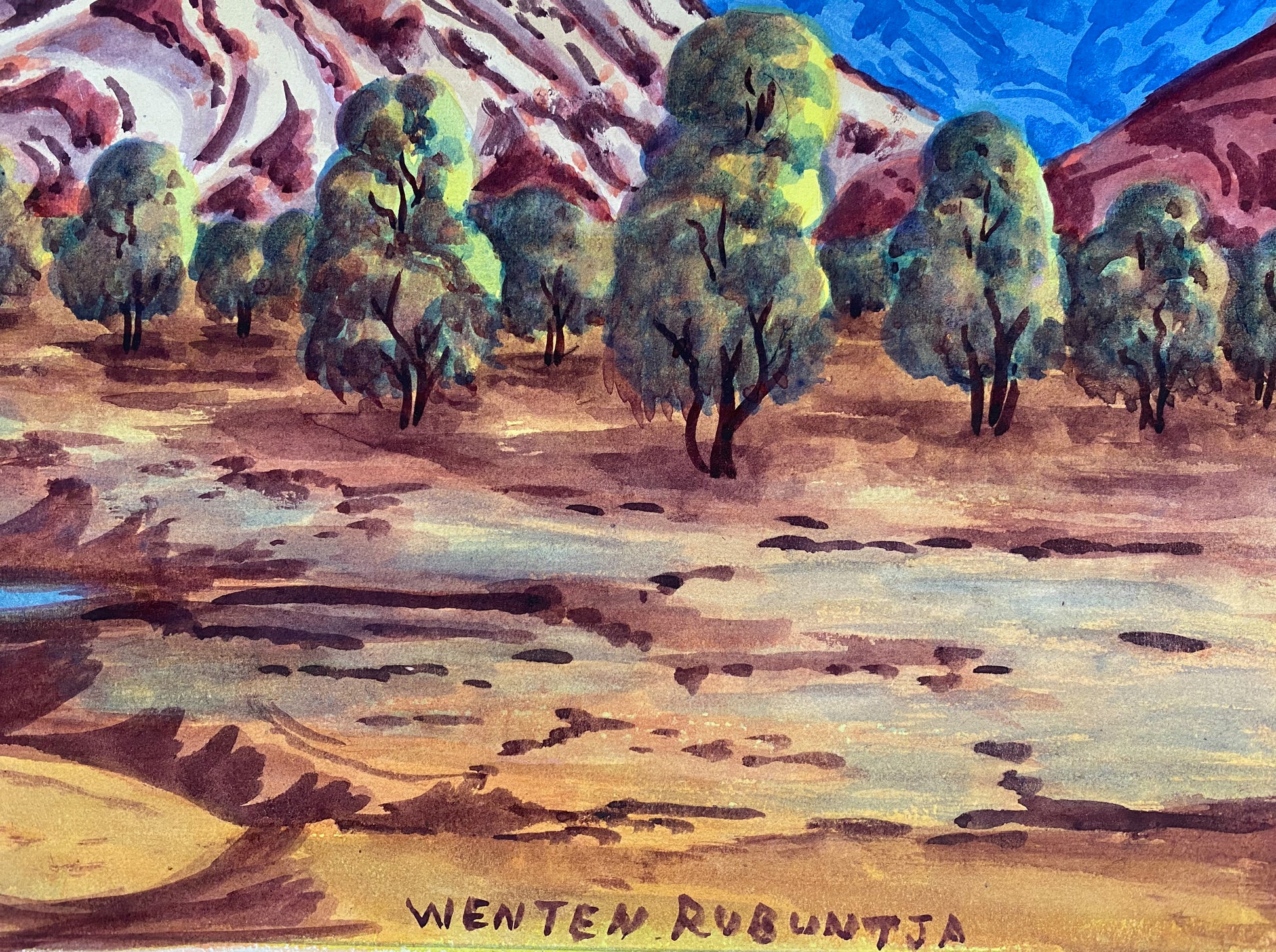 He was inspired to paint water colour by his relative Albert Namatjira, the famous water colour artist whose paintings depict the Central Australian Landscapes.